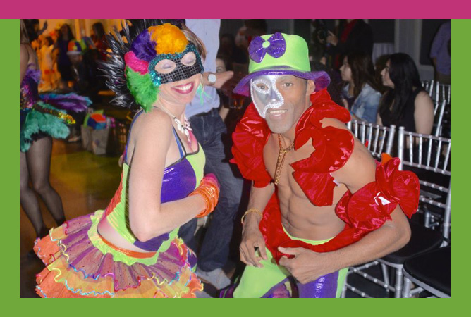 The “Hora Loca ” is a one-hour show that integrates into your party or event, adding a magic touch that energizes all your guests. Performers are featured with spectacular carnival costumes, music, and choreography that will transform your party into an explosion of fun. Hora Loca shows are perfect for weddings, parties and corporate events.