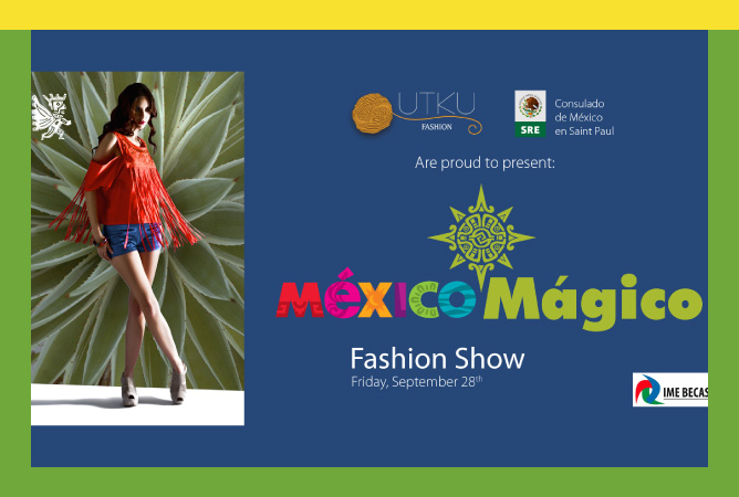 The Consulate of México in Saint Paul and UTKU'S team worked together to create the "México Mágico" (Magic México) concept. We gathered the best proponents of culture and fashion in Mexico, UTKU connected with "Compra Moda Nacional" (National Fashion Buyer), the most important fashion platform in México. CMN and UTKU worked together to carefully select and feature the best designers for this successful showcase event. This unique fashion show event brought together contemporary fashion and designers deeply rooted in the rich cultural traditions of Mexico.