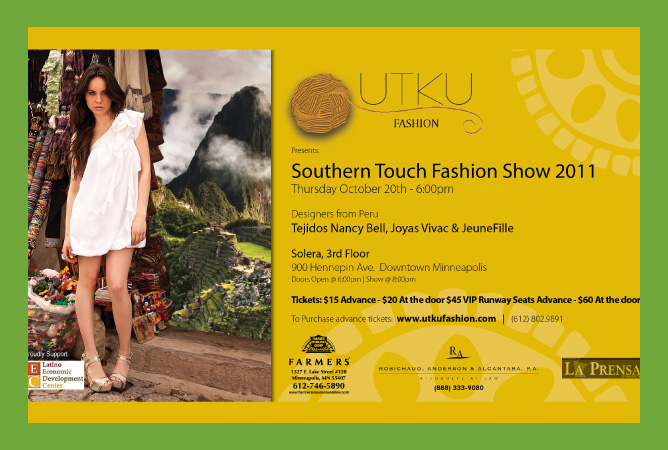 In 2011 we produced “Southern Touch Fashion Show" to showcase the exquisite expression of Peruvian culture on Minnesota runways.