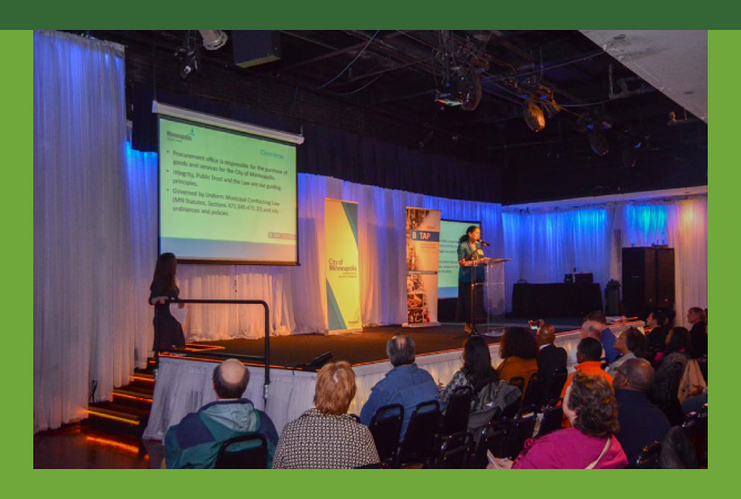 In close collaboration with the City of Minneapolis staff, we produced an event where City agency leaders presented their procurement process. Our team provided event planning, logistics and promotion. The conference attracted proprietors of over 300 minority-owned businesses.